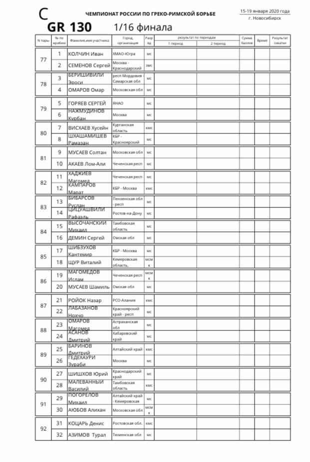 Он лайн табло вести не смогу. Надо ехать на работу. Потом заполню. Если кто может , прошу помочь.На 1 страницу закинул сетки и на все остальные весовые категории.