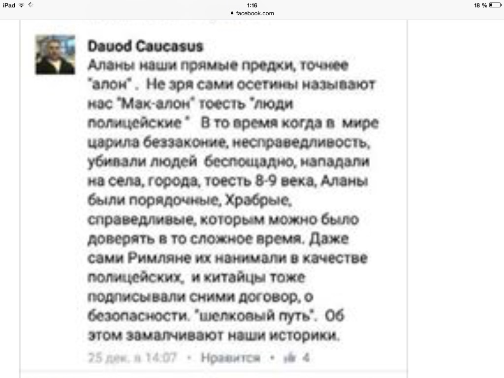 Kurshlo,возможно ты и прав насчет лояльности Евкурова,но речь сейчас не об этом.Я же прямо говорю,что не понимаю что происходит.С чем связан такой разворот и интерес ингушей к истории алан? Весь мир знает,что ингуши-вайнахский народ.А нынче , с подачи ингушского общества получается,причем абсалютно безосновательно,что они прямые потомки алан. Я правда не видел еще,не слышал,чтобы они отказывались от своего вайнахского происхождения.Но не удивлюсь,если это произойдет!Набранный темп по переписыванию истории алан дает мне права полагать и думать именно так!kurshlo написал(а):Миширби, не могу себе даже представить более лояльного к осетинам человека во главе Ингушетии нежели Евкуров)) http://www.youtube.com/watch?v=p-N8gGWIiJkМиширби написал(а):Хоть меня и просили не раскачивать тему,но не могу смолчать.Не понимаю что происходит.Чем дальше в лес,тем больше дров.Юнус-Бека и его земляков не устраивает история своего народа,история вайнахов? Иначе чем объяснить желание переписать и присвоить чужую историю? Хочется крепко выразиться,но из-за уважения к вайнахским форумчанам промолчу.